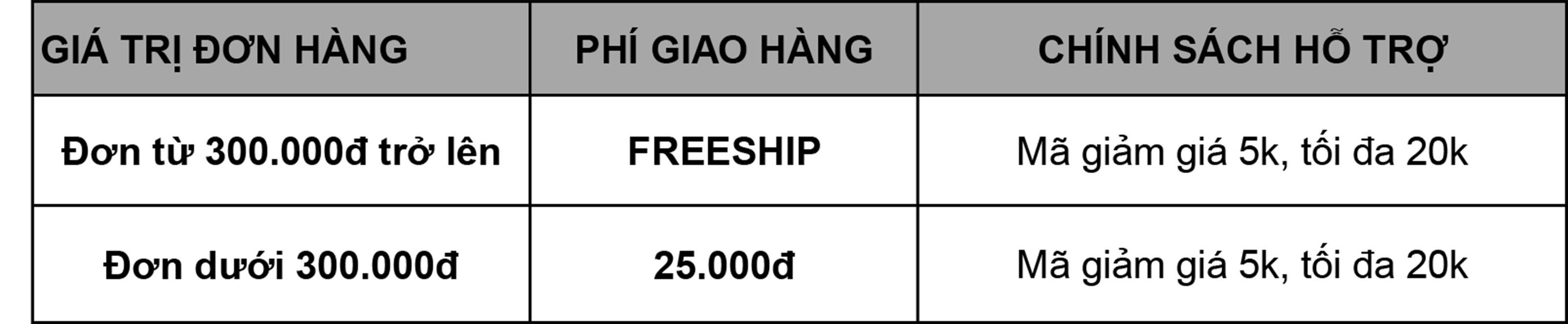 • Miễn phí giao hàng cho đơn hàng từ 300.000đ trở lên.